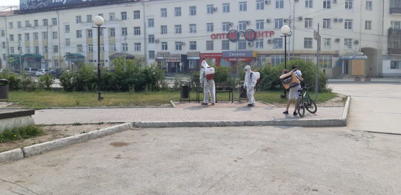 В Якутске в выходные дни продолжилась дезинфекция общественных пространств в рамках мероприятий против распространения новой коронавирусной инфекции. Работники МУП «Жилкомсервис» провели масштабную обработку городских площадей, детских площадок, тротуаров, автобусных остановок при помощи ранцевых опрыскивателей, передает ЯСИА.