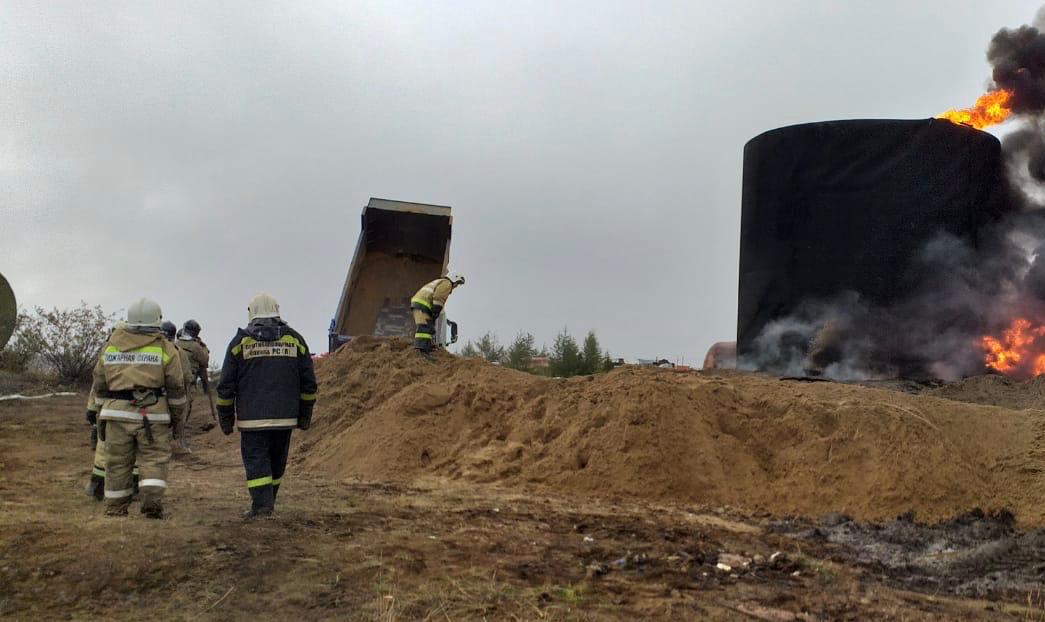 Как сообщает оперативная группа, работы по тушению проводились всю ночь, возгорание уменьшилось. На территорию завезено порядка 500 тонн песка, горит одна емкость. Сейчас делается второе кольцо для защиты рядом стоящих емкостей.